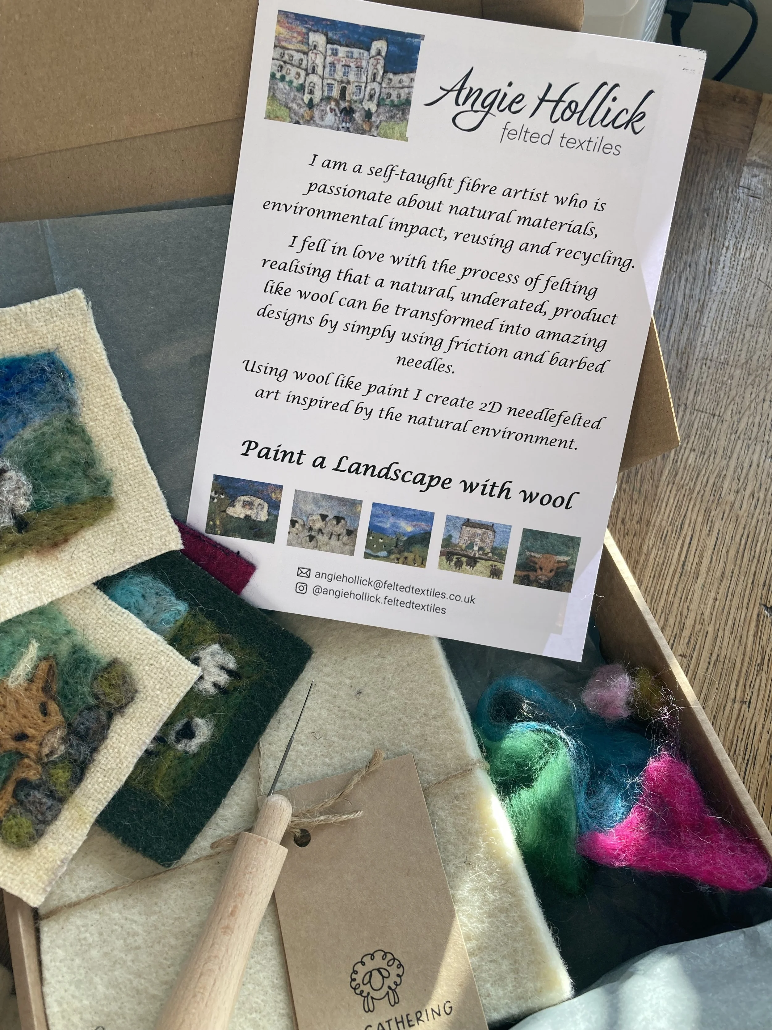You can choose to purchase a frame or a card to mount your work. And also kits will be available to purchase if you would like to carry on felting in the comfort of your own home.